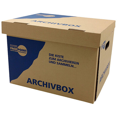 - Ausführung: Braun mit Beschriftung "Archivbox"