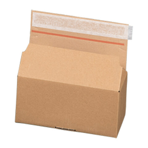 Schnellaufrichtekarton 229x164x(50)-115mm variable Höhe Selbstklebeverschluss Aufreißfaden braun