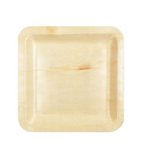 25x Holzteller Einwegteller aus Pappelholz quadratisch 21x21cm nachhaltig
