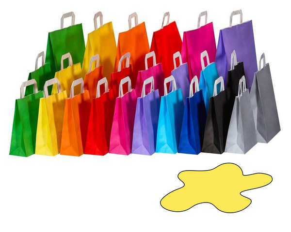 Titel: Papiertragetaschen Papiertaschen Flachhenkel 18x8x22cm gelb 70gr., 250 Stk.Liefermenge: 250 Stk.